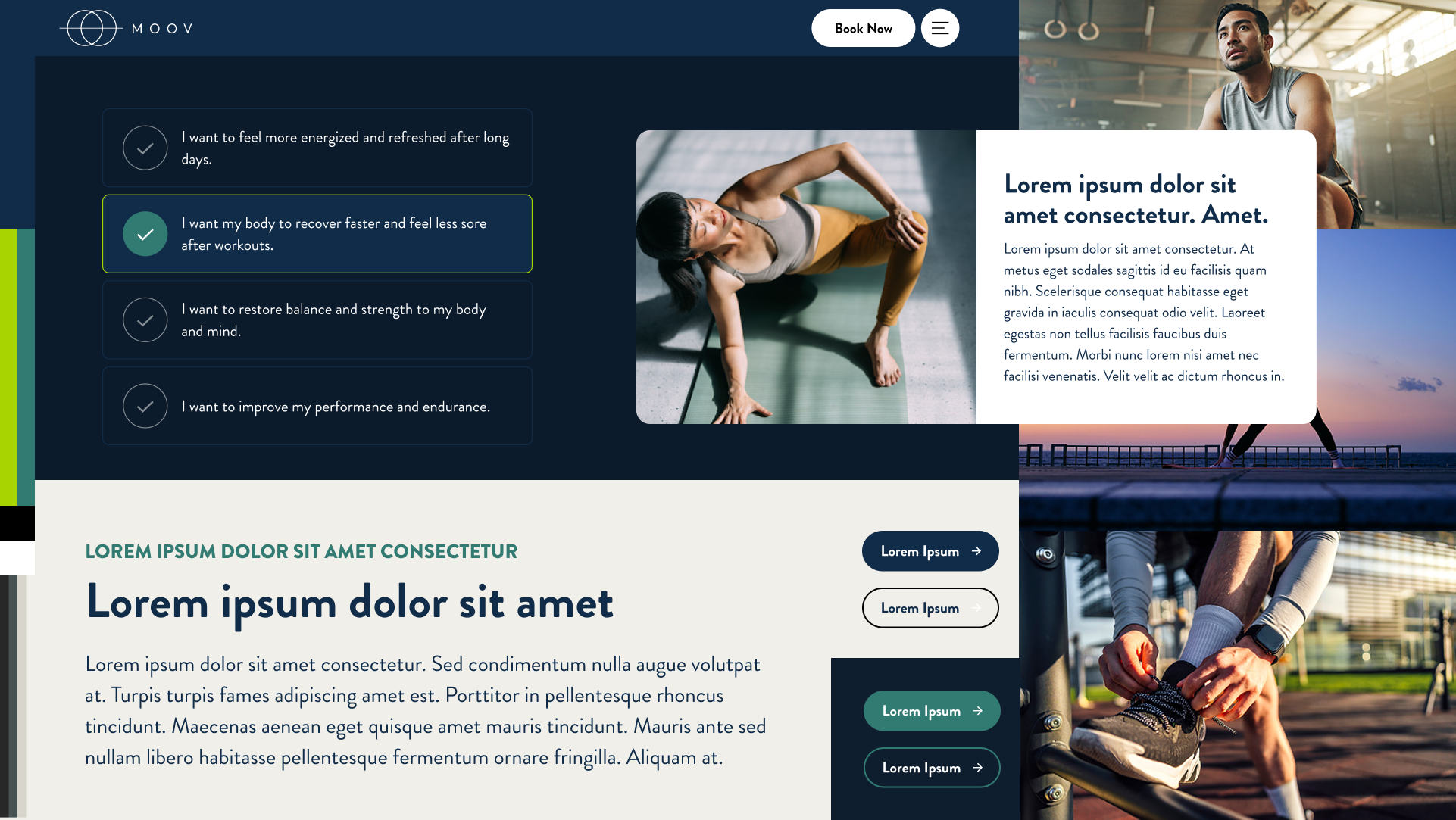 Consolidated dozens of scattered pages into a clear hierarchy organized around MOOV's three core pillars: Beauty, Performance & Recovery, and Longevity. Created focused pathways that help users understand exactly what services they need and how to access them.